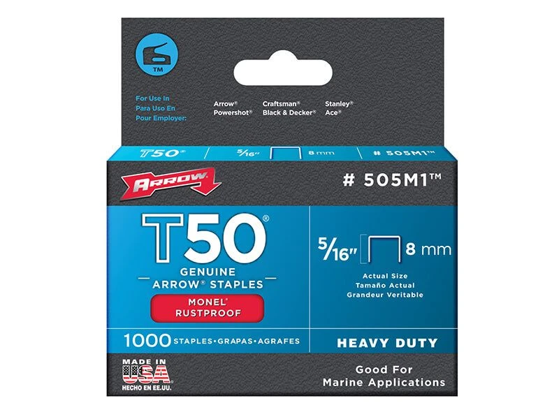 The Arrow ARRT5012MS T50M 508m Monel staples come in the following: