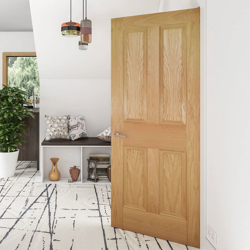 The Kingston Oak Veneer Fire Door is unique in its style. It is a mixture of the traditional Victorian 4 panel door but with an additional unique bead moulding style in the inset panel. Manufactured using beautiful oak veneers and solid oak beads, the Kingston door also comes with 15mm solid oak lipping to ensure it fits well into your home. Fire safe for 30 minutes.