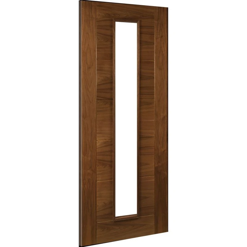 The Seville Interior Prefinished Walnut 1 Panel Glazed Fire Door made by Deanta, is a high quality, stable and beautifully finished door for any home or place of work. Because of its solid timber core, it has a heavy feel. Made using a closed grain, smooth finish Walnut veneer that gives it a beautiful finish. They also are supplied with a thick, 15mm solid walnut lipping to make them easier to fit and retain screws and hardware much better than other door styles. Also available in White, Oak. Supplied with 8mm 30 minute fire rated glass.