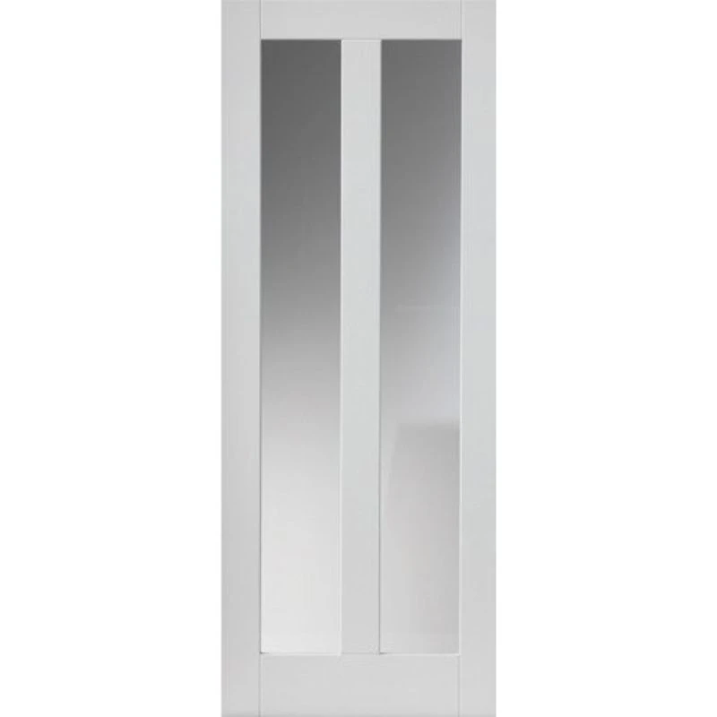 JB Kind offer a wide range of products to redesign your home, such as this white shaker style internal door with two clear glass panels, supplied ready primed.