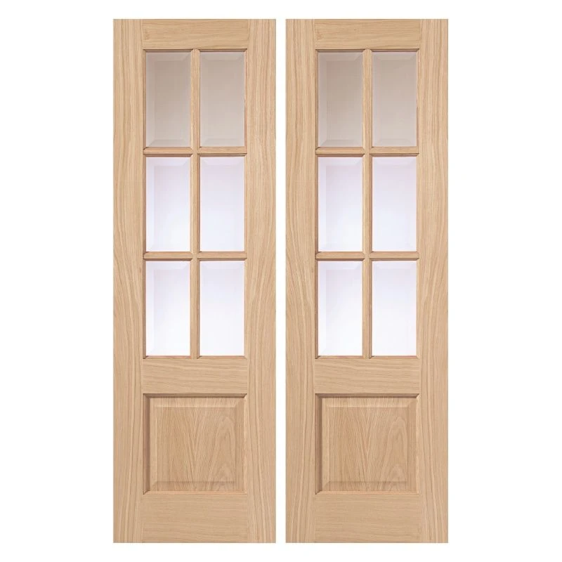 JB Kind offer a wide range of products to redesign your home, such as this oak glazed internal door pair with rebated meeting stiles. supplied prepared ready for a varnish finish.