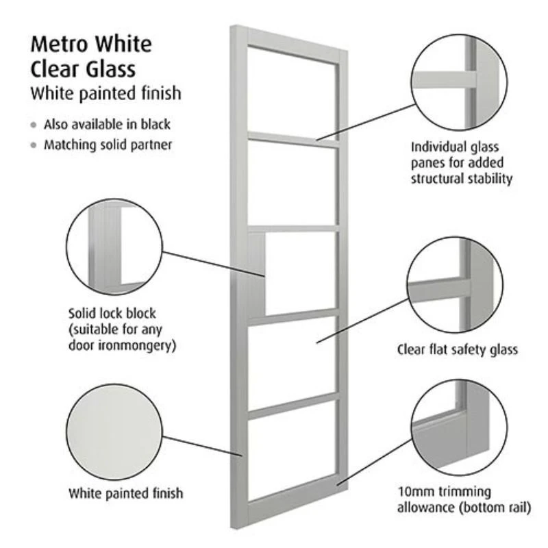JB Kind Metro Glazed White Interior Door 1981 x 838 x 35mm – UMET29GWH