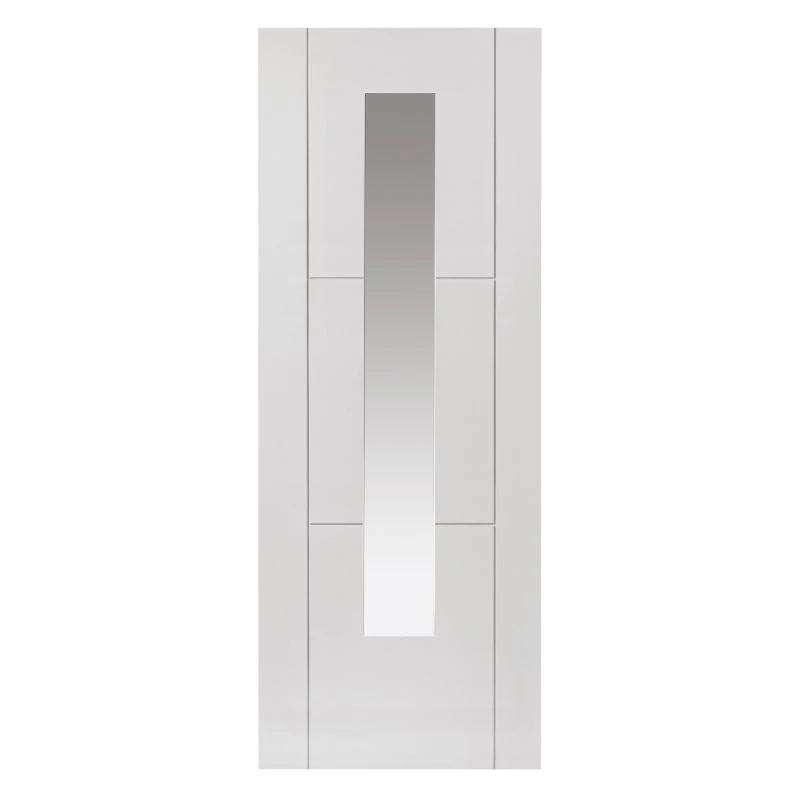 JB Kind offer a wide range of products to redesign your home, such as this contemporary clear glazed white primed interior door with grooved panel effect.