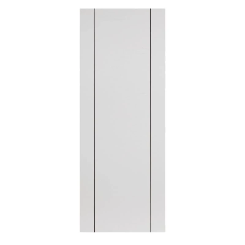 JB Kind offer a wide range of products to redesign your home, such as this modern white painted flush interior door with black vertical grooves.