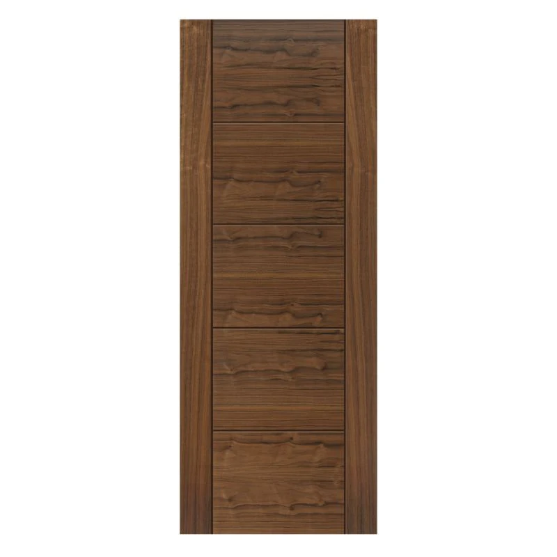 JB Kind offer a wide range of products to redesign your home, such as this contemporary walnut veneered internal door with grooved panel effect, supplied complete with varnish finish.