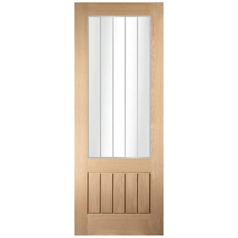 The Oregon Cottage Etch glazed door will really make a statement in your home. American white oak panelling provides a cottage feel, while smart vertical lines etched in the top glass panel give the door a modern edge.
