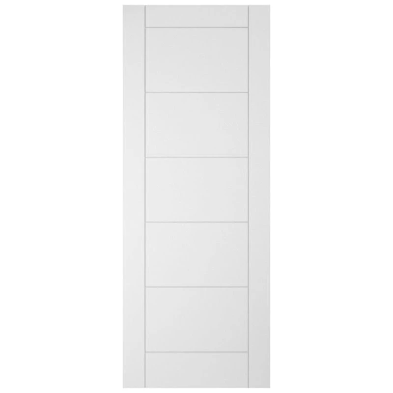 A ladder door style that combines simple, elegant design with a solid core construction that will reduce sound transmission between rooms. Pre-primed white, so it’s ready for whatever final finish you have in mind.