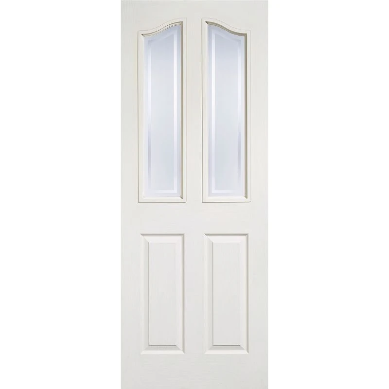 The LPD White Moulded Mayfair 2L Glazed Door 1981 x 762 (30″) – MAY2P2L30 is designed to fit perfectly into any house to get a traditional feel. Two frosted glazed panels feature clear lines and a curved top edge, with two raised shaped panels in a white composite below.