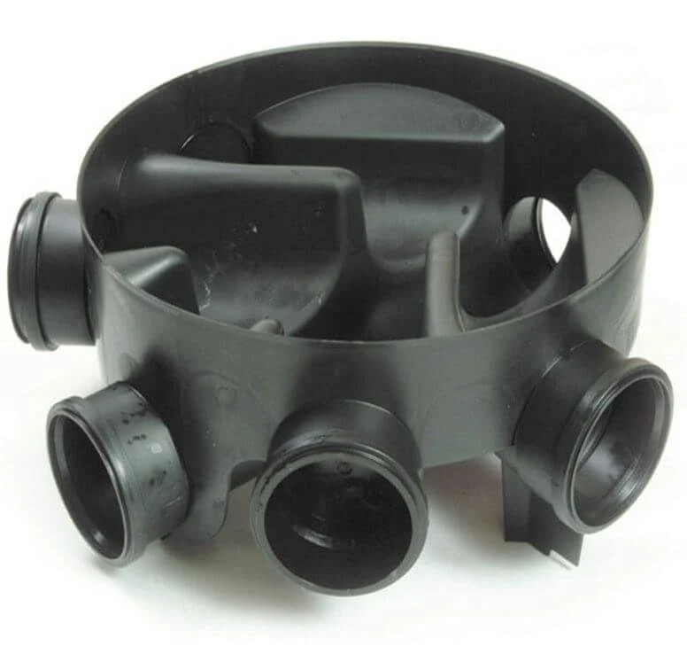 Polypipe inspection chamber base with 4 side branch inlets – 2 x 45 degree & 2 x 90 degree (220mm with 3 blanking plugs)