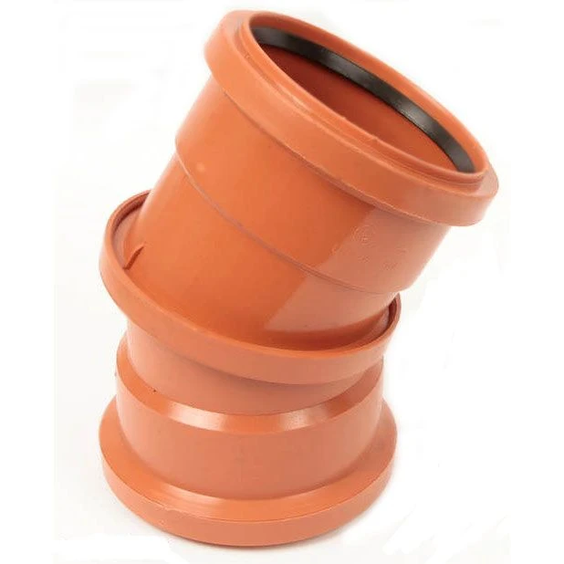 Polypipe adjustable 0-30° double socket bend – joins two plain ended underground pipe together.