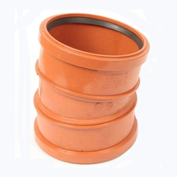 Polypipe double socket bend – joins two plain ended underground pipe together through 11.25 degrees.