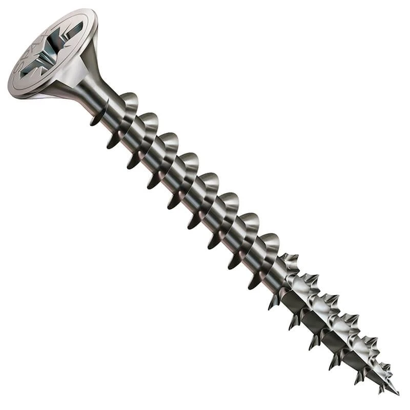 Description Spax Countersunk Pozi Stainless Steel Screw 5.0mm X 50mm Box Of 200 The SPAX Stainless steel pozi screws for wood plastic and chipboard. The Spax stainless screw combines full protection against corrosion together with the other well known qualities of Spax. These screws are ideal for outdoor applications with direct exposure to elements. In the long term galvanised protective coatings frequently do not sufficiently protect steel screws against corrosion in outdoor areas. Rust is not just ugly but also expensive. In particular if the quality of expensive products or components deteriorates and results in damage. Costly reworks and repairs become necessary. Rust can be avoided. The SPAX rust-free stainless steel offers protection against corrosion. Product code: 1087000500503 Box of 200 Ideal for outdoor use Optimised head recess design give strong bit hold and help prevent bit slippage Lower driving in torqu and higher holding power through the patented ground serrations New synthetic coating makes for easier driving in Stainless steel A2 II: high corrosion protection Razor sharp point gives an accurate instant start Dimensions: Diameter 5.0 mm Length approx 2″ or 50mm Detailed Information Detailed Information Detailed Information Detailed Information Detailed Information Detailed Information Detailed Information Detailed Information More Info / Technical Drawing