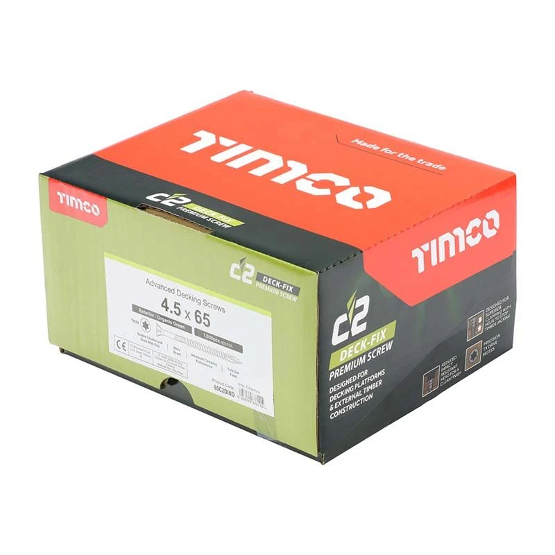 Timco C2 Deck-Fix Premium Decking Screws – TX – Countersunk – Exterior – Green Box 1000pcs – 4.5 x 65 – 65C2DIND Details