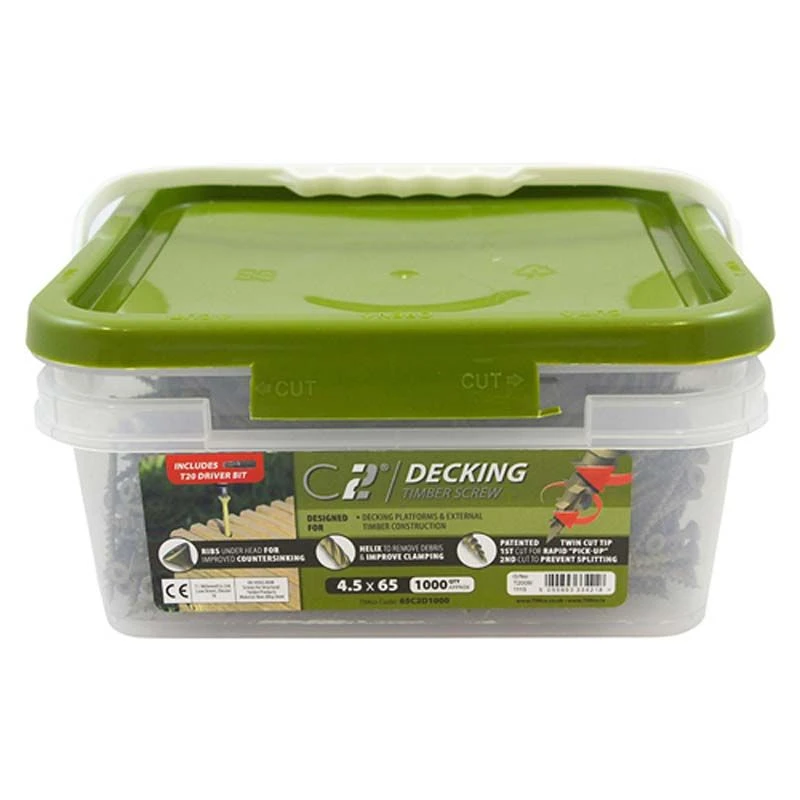 Timco C2 Deck-Fix Premium Decking Screws – TX – Countersunk – Exterior – Green Tub 1000pcs – 4.5 x 65 – 65C2D1000 Details