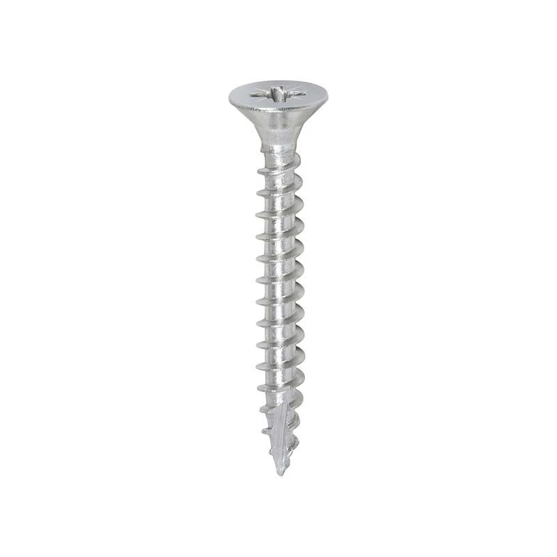 The Timco multi-purpose classic screw has been designed as an all round product, the 25º sharp point, special thread design, lubrication and corrosion resistant plating ensures the screw will consistently perform efficiently in hardwood, chipboard, MDF, plastic and thin sheet metal.