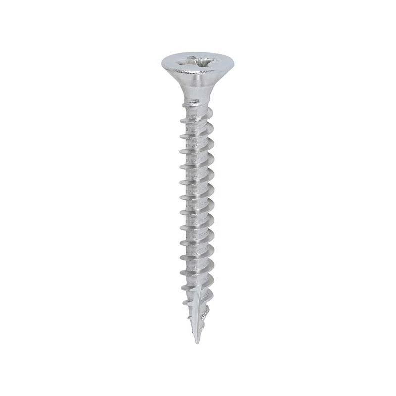The Timco multi-purpose classic screw has been designed as an all round product, the 25º sharp point, special thread design, lubrication and corrosion resistant plating ensures the screw will consistently perform efficiently in hardwood, chipboard, MDF, plastic and thin sheet metal.