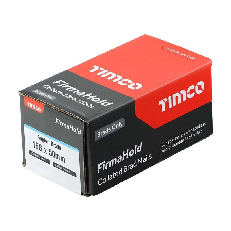 Timco FirmaHold Collated Brad Nails – 16 Gauge – Angled – A2 Stainless Steel Box 2000pcs – 16g x 50 – ABSS1650 Details