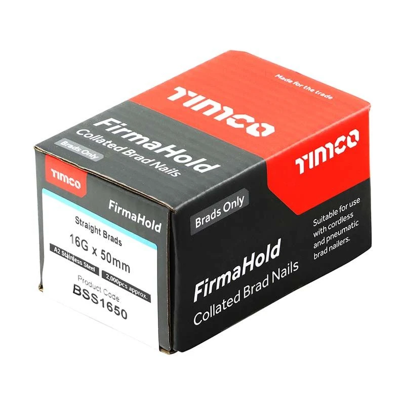 Timco FirmaHold Collated Brad Nails – 16 Gauge – Straight – A2 Stainless Steel Box 2000pcs – 16g x 50 – BSS1650 Details